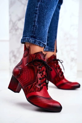 Damskie Botki Trapery Big Star Skórzane Bordowe EE274006