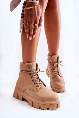 Damskie Botki Trapery Ocieplane Beżowe Flavin