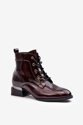 Lakierowane Damskie Botki Workery Sznurowane Ciemnobeżowe S.Barski MR870-72