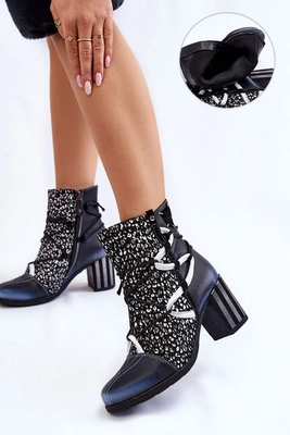 Ażurowe Botki Na Słupku Maciejka 04593-17 Granatowe