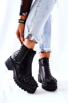 Botki Sztyblety Z Dżetami Czarne Comonis