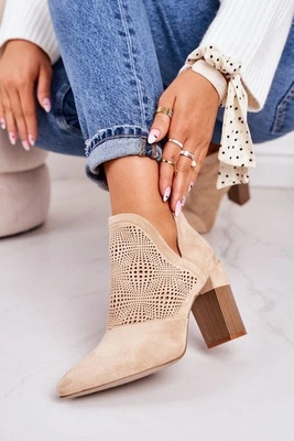 Botki Z Wycięciami Na Słupku Vinceza 21-10558 Beżowe