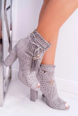 Botki Damskie Na Słupku Zamszowe Szare Corinne