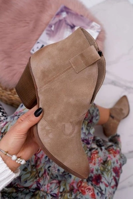 Botki Damskie Na Obcasie Wiosenne Skóra Zamsz Cappuccino Nicole 2430