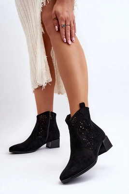 Damskie Ażurowe Botki Czarne Madalina