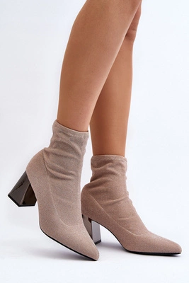 Błyszczące Botki Na Słupku Beżowe Sognota