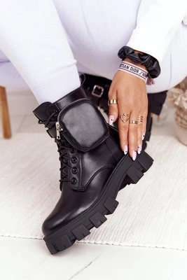 Damskie Botki Workery Na Platformie Czarne Cosmic Love