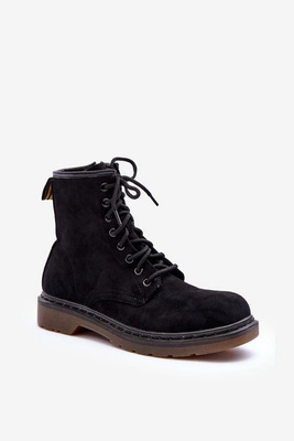 Zamszowe Botki Workery Na Płaskim Obcasie Czarne Asteoris