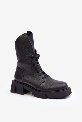 Damskie Skórzane Botki Workery Na Masywnym Płaskim Obcasie Zazoo 976A Czarne