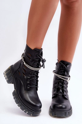 Damskie Botki Workery Sznurowane Czarne Marlissa
