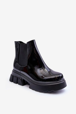 Damskie Lakierowane Botki Ocieplane GOE II2N4050 Czarne