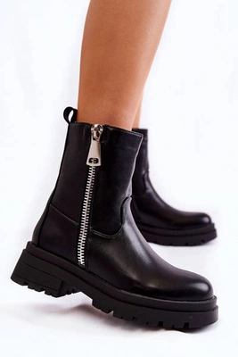 Damskie Botki Ocieplane Na Suwak Czarne Fabiola