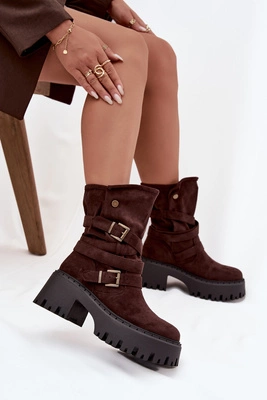 Ocieplane Botki Workery Damskie Z Klamrami Brązowe Marisse