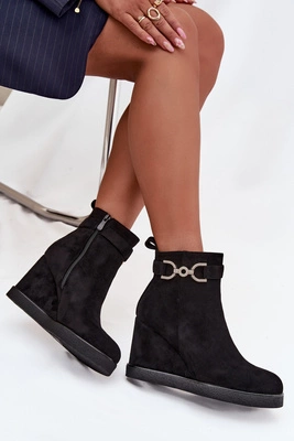 Ocieplane Botki Na Koturnie Z Eko Zamszu Czarne Mavona