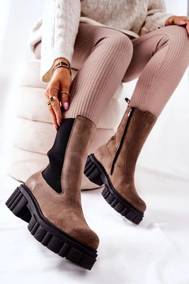Zamszowe Botki Sztyblety Na Platformie Beżowe Marissa