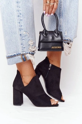 Damskie Botki Z Wycięciem Na Słupku Zamszowe Czarne Lawrence