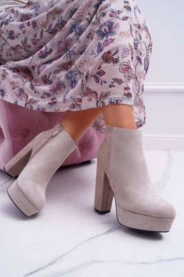 Botki Damskie na Słupku Platformie Zamszowe Beżowe Celinne