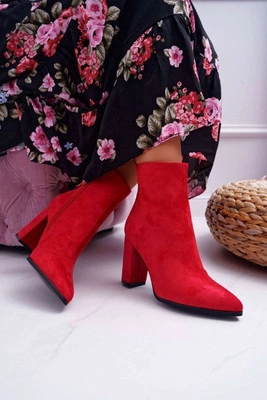 Botki Damskie Na Słupku Zamszowe Czerwone Corinne
