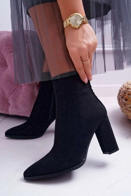 Botki Damskie Na Słupku Suwak W Szpic Zamszowe Czarne Ferol