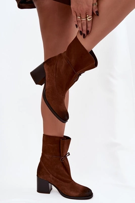 Skórzane Zamszowe Botki Damskie Na Słupku Zazoo 1151 Czekoladowe