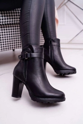 Botki Damskie Na Słupku Laura Messi Skórzane Czarne 2056