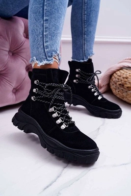 Damskie Botki Workery Big Star Skórzane Czarne EE274506