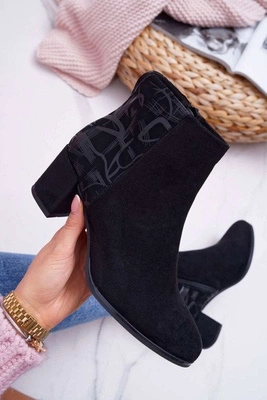 Botki Damskie Zamszowe na Słupku Czarne Barski 73-2