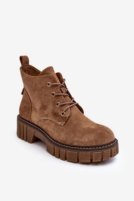 Zamszowe Ocieplane Botki Sznurowane Ciemnobeżowe Bjorg
