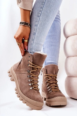 Botki Trapery Ocieplane Wiązane Beżowe Karley