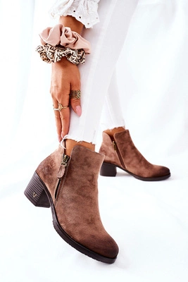 Botki Damskie Zamszowe Brązowe Nicole 2676