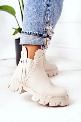 Damskie Botki Workery Na Platformie Beżowe Cosmic Love