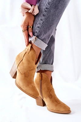 Damskie Botki Kowbojki Zamszowe Camel Barski 1638