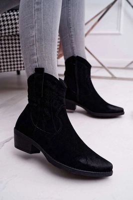 Damskie Botki Kowbojki Zamszowe Czarne Barski 1638