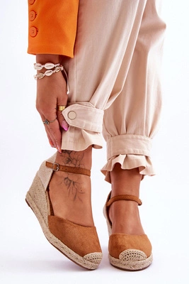 Zamszowe Sandałki Espadryle Na Koturnie Camel Cammer