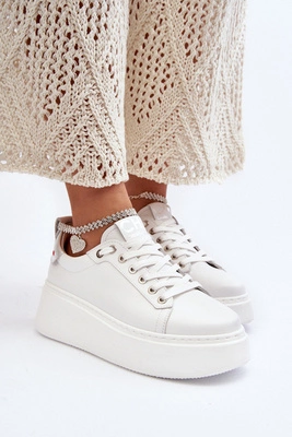 Skórzane Damskie Sneakersy Z Bransoletą CheBello 4406 Białe