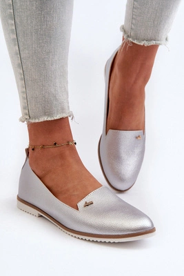 +4Mokasyny Na Płaskim Obcasie Damskie Srebrne Enzla