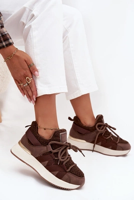 Ocieplane Sneakersy Damskie Na Platformie Brązowe Juvira