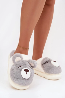 Futrzane Kapcie Z Motywem Misia Szare Galine