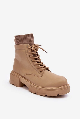 Trapery Botki Damskie Ze Skarpetą Beżowe Rivella