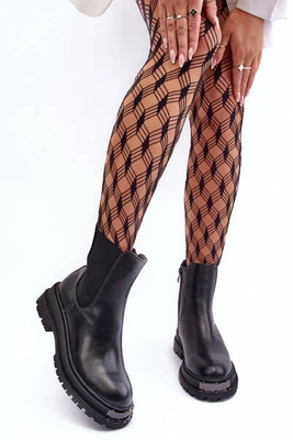 Ocieplane Botki Workery Na Płaskim Obcasie Czarne Saranema