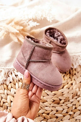 Dziecięce Śniegowce Ocieplane Futerkiem Zamszowe Różowe Amelia