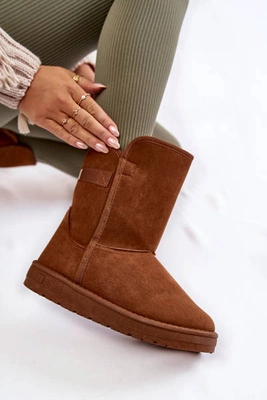 Damskie Zamszowe Ocieplane Botki Brązowe Silvor