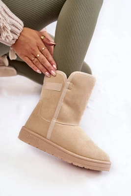 Zamszowe Ocieplane Botki Z Paskiem Beżowe Aurelio