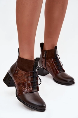Ocieplane Skórzane Botki Damskie Z Ozdobnym Detalem Brązowe Briselda