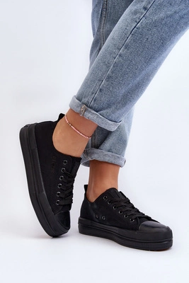 Trampki Skórzane Damskie Na Koturnie Big Star MM274001 Czarne