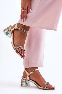 +2Damskie Sandały Na Obcasie Z Kryształkami Złote S.Barski MR1037-01