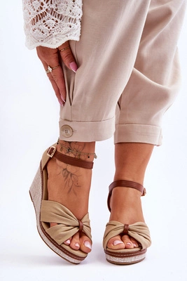 Klasyczne Damskie Sandały Na Koturnie Beżowe Malmo