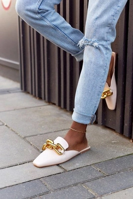 Klapki Z Cholewką I Łańcuchem Beżowe Call On Me