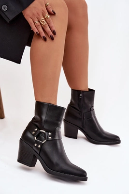 Ocieplane Botki Damskie Na Słupku Z Ozdobnym Elementem Czarne Jurelle