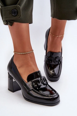 Zazoo 20170 Półbuty Skórzane Damskie Na Słupku Czarne